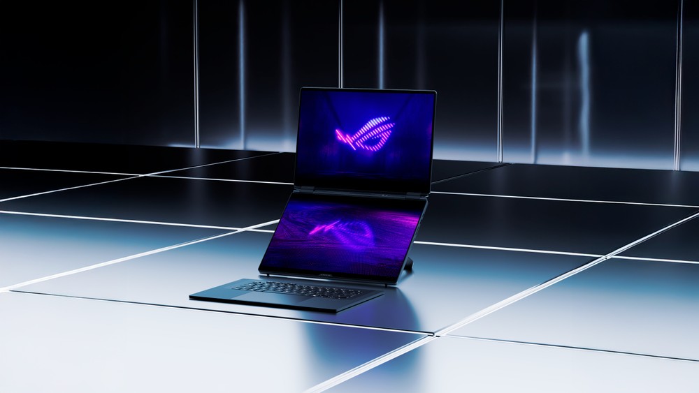 Principal destaque do dia, o ASUS ROG Zephyrus Duo 2026 marca o retorno da família de notebooks gamer de tela dupla da companhia, com um design completamente novo, próximo ao do que a marca passou a oferecer com o Zenbook Duo. O visual lembra outros modelos Zephyrus externamente, mas internamente há duas telas de 16 polegadas, em vez de um painel secundário pequeno como no passado.